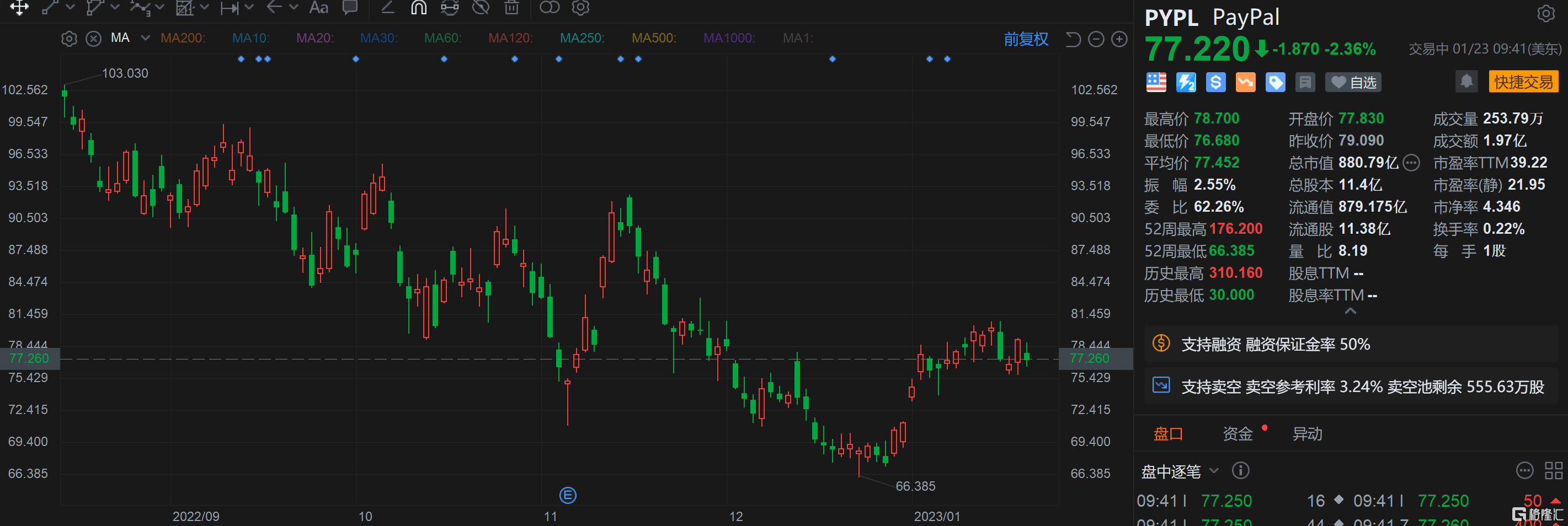 格隆汇1月23日丨Paypal(PYPL.US)跌超2%,报77.22美元。富国银行、美国银行、摩根大通等银行正在研发一款数字钱包,与Paypal、Apple Pay竞争。