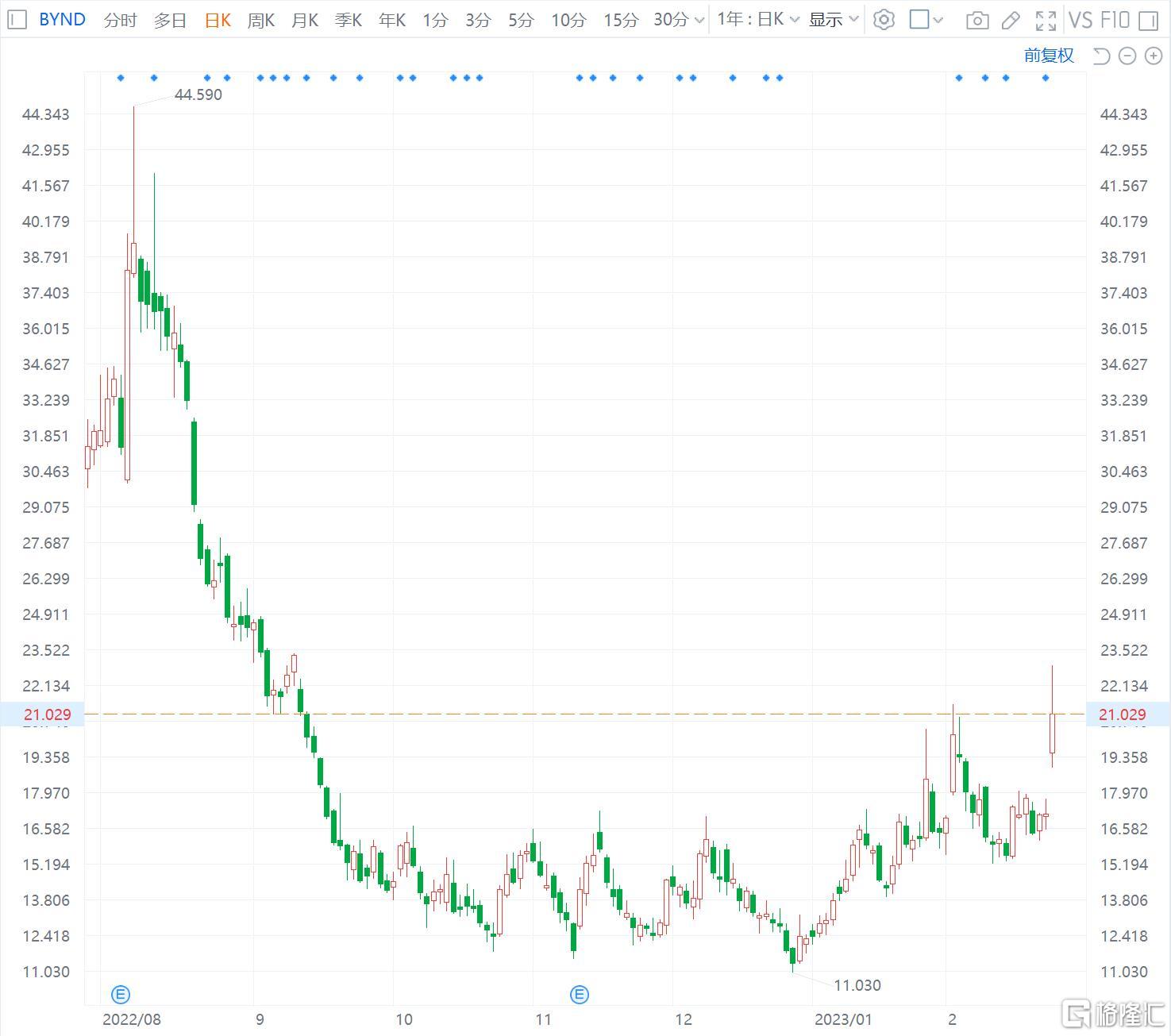 格隆汇2月24日丨Beyond Meat大涨22.64%,报21.02美元,总市值13.41亿美元。Beyond Meat四季度调整后每股亏损1.05美元,分析师预期亏损1.18美元;四季度营收7990万美元,分析师预期7570万美元。Beyond Meat预计2023年净营收约3.75亿-4.15亿美元。Beyond预计其2023年的收入将在3.75亿至4.15亿美元之间,销售额将同比下降1%至10%,市场预期为3.22亿至4.96亿美元。